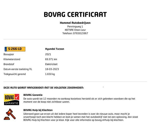 - BOVAG Garantie 12 maanden