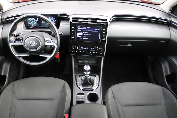Deze Hyundai TUCSON staat garant voor vele veilige en comfortabele kilometers. Vanaf nu kunt u hybride rijden, door de combinatie van een verbrandingsmotor en een elektromotor. Ook 17 inch lichtmetalen velgen, LED-dagrijverlichting, in delen neerklapbare achterbank en verstelbare lendensteunen zijn aan boord. Met het digitale dashboard kunt u de cockpit-interface naar uw voorkeur instellen. Kommaar-kommaar-kommaar, aldus de achteruitrijcamera. Iedere centimeter vrije ruimte komt haarscherp in beeld. Schadevrij inparkeren maar! Een veiligheidsverhogende optie is de ingebouwde spraakbediening. Terwijl u uw ogen op de weg houdt, bedient u de auto met uw stem. De auto is voorzien van een trekhaak en is een uitstekende caravantrekker. Deze Hyundai TUCSON is 'connected'. Belangrijke functies worden permanent gemeten en zijn uit te lezen via een speciale app, ook op afstand. En deze auto heeft ook automatische airconditioning, DAB ontvangst, regensensor, cruise control, lederen stuur en centrale deurvergrendeling met afstandsbediening als standaard uitrusting. De automatische veiligheidssystemen in deze Hyundai fungeren als een extra paar ogen. En dat niet alleen, ze kunnen ook actief ingrijpen, om zo u en uw passagiers te beschermen. Wat deze auto ook kan, is lezen. Hij 'leest' voor u de verkeersborden tijdens de rit en attendeert u erop door ze op het dashboard te projecteren. Ongemerkt buiten de rijstrook raken? Nee hoor, het Lane-keeping systeem waarschuwt en corrigeert. Onbedoeld bumperkleven is er niet bij, dankzij de forward collision warning. Die waarschuwt direct als een botsrisico met uw voorligger dreigt. Ook helpen het hill hold functie, vermoeidheidsherkenning, autonoom remsysteem en bandenspanningcontrolesysteem, uw rit tot een veilige rit te maken. Wilt u deze auto zelf ervaren? Neem dan contact op met een van onze medewerkers.