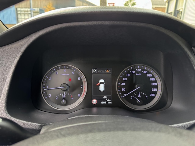 Nekkramp en verdraaide schouders zijn verleden tijd. Door de achteruitrijcamera is iedere meter achter de auto glashelder in beeld. Hoeveel gigabytes aan muziek wilt u meenemen? Met één stick in de usb-aansluiting kunt u uren en uren vooruit. Op een drukke weg heeft u soms ogen in uw achterhoofd nodig. De sensoren aan de achterzijde nemen die functie over en geven een achteropkomend verkeer waarschuwing als een achterligger te dicht op u zit. Ook is de auto voorzien van automatische airconditioning. Achter het stuur van deze Hyundai bent u niet alleen. De auto kijkt als het ware met u mee tijdens de rit. De regensensor schakelt de ruitenwissers in als het nodig is en de automatisch inschakelbare verlichting doet de lichten voor u aan. Deze auto is voorzien van navigatiesysteem, DAB ontvangst, cruise control, keyless entry, buitentemperatuurmeter en automatisch dimmende binnenspiegel.