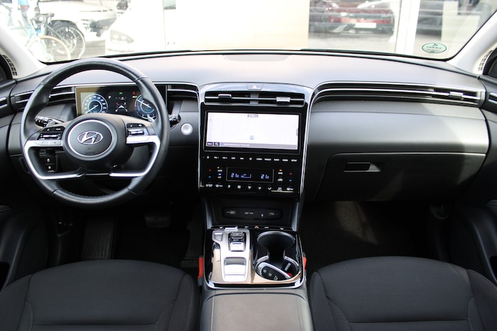 Een auto is meer dan een vervoermiddel. De juiste auto kan uw leven verrijken, door zijn comfort, zijn smaakvolle vormgeving en door de rijervaring die hij biedt. Dat geldt bijvoorbeeld voor deze Hyundai TUCSON, die uitblinkt door zijn design maar vooral ook om zijn rijkwaliteiten. Deze Hyundai TUCSON heeft een hybride motor, dus een combi van brandstof en elektrisch. Een slim en milieuvriendelijk systeem dat ook nog eens lekker kostenbesparend is. In de verwarmbare voorstoelen zitten is elke keer een welkom gevoel. De bagageruimte is toegankelijk via een comfortverhogende elektrische achterklep. Deze Hyundai TUCSON heeft een verwarmd stuurwiel. Nooit meer koude handen onderweg. Bij de rijke uitrusting horen ook 19 inch lichtmetalen velgen, LED koplampen, extra getint glas, in delen neerklapbare achterbank, LED-achterlichten en verstelbare lendensteunen. In één oogopslag heeft u alle benodigde functies onderweg in beeld, dankzij het slim ingedeelde digitale dashboard. Een onopvallend paaltje of een overstekend kind achter de auto brengt risico's met zich mee. Gelukkig laat de achteruitrijcamera feilloos zien of alles veilig is. Met adaptive cruise control houdt deze auto automatisch afstand tot uw voorligger. De ingebouwde file assistent is een echte helper als het vaststaat onderweg. Het systeem meet ruimte tot de auto vóór u permanent en activeert zelfs de remmen als uw voorligger stopt. Het infotainmentsysteem bedient u met uw vingers of met uw stem, met dank aan de geïntegreerde stembediening. Extra opties op deze auto zijn: connected drive services, premium audiosysteem, full map navigatiesysteem, kruisend verkeer detectie, automatische airconditioning en draadloos opladen. U geniet nog meer van het rijden met uw Hyundai omdat u wordt beschermd door intelligente veiligheidssystemen. Dat de auto steeds meer taken van de bestuurder overneemt, merkt u bijvoorbeeld aan het systeem voor verkeersbord-detectie in deze Hyundai. Voorzien van het Lane-keeping systeem. Ofwel: blijf automatisch in je baan. Forward collision warning waarschuwt bij een dreigende aanrijding met een voorligger. U bent mede dankzij hill hold functie, vermoeidheidsherkenning, autonoom remsysteem en bandenspanningcontrolesysteem steeds veilig onderweg. Een proefrit levert het overtuigende bewijs. Bel nu!