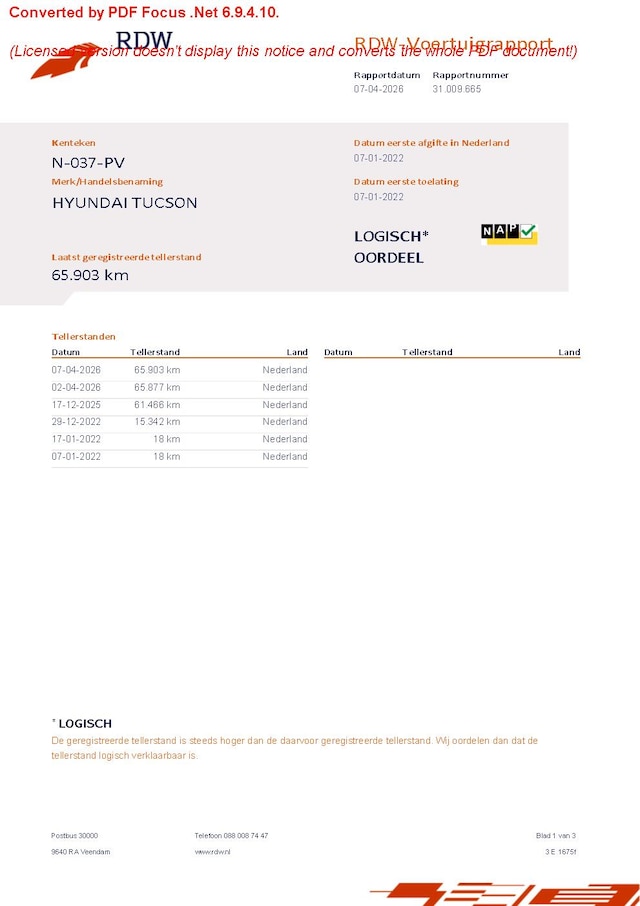 | Kilometerstand | 65.903 km |