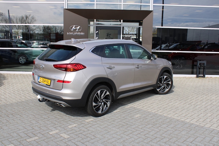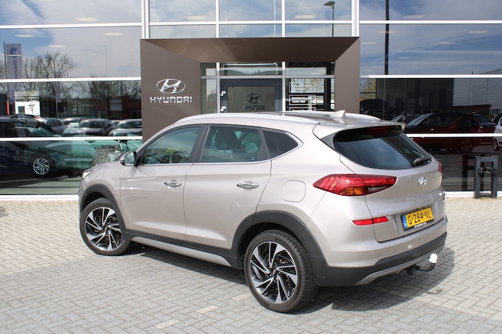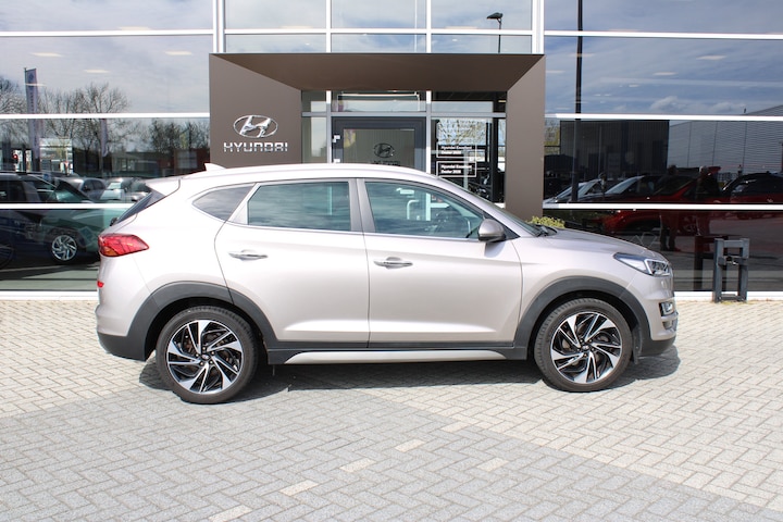 Over Hyundai wordt vernieuwend nagedacht. New Thinking. New Possibilities. In deze auto vindt u een benzinemotor en een automatische transmissie. Het met leer beklede interieur geeft deze auto een gedistingeerde uitstraling. Zelfs op de koudste dagen zorgt het verwarmbare stuurwiel, de voorstoelen en de achterbankverwarming ervoor dat u en uw passagiers het nooit koud hebben in deze luxueuze auto. De elektrische achterklep opent met een druk op de knop, zodat u gemakkelijk toegang heeft tot de bagageruimte. Bij de uitrusting van deze Hyundai horen onder meer 19 inch lichtmetalen velgen, LED koplampen, warmtewerend glas, in delen neerklapbare achterbank, LED-achterlichten en verstelbare lendensteunen. De 360 graden camera op deze auto is een innovatieve functie die de obstakels rondom de auto in beeld brengt voor een optimaal zicht. Adaptive cruise control houdt de ingestelde snelheid vast en houdt afstand tot het voertuig voor u. Zo kan muziek in de auto klinken: het high performance audiosysteem levert topklasse geluid! Onderweg de smartphone opladen gaat helemaal zonder snoeren, door de draadloze telefoonlader. De achteropkomend verkeer waarschuwing geeft een signaal als degene achter u te dicht op u zit. Ook handig en veilig bij het wisselen van rijbaan. Deze Hyundai is voorzien van full map navigatiesysteem, automatische airconditioning, DAB ontvangst, regensensor, keyless entry en automatisch dimmende binnenspiegel. In de Hyundai TUCSON heeft uw veiligheid en die van uw omgeving prioriteit. Onderweg fungeert de verkeersbord-detectie als het ware als uw bijrijder en attendeert u op de verkeersborden langs de weg. Het Lane-keeping systeem zorgt dat u mooi binnen de lijntjes blijft. Ongemerkt buiten de rijstrook komen is er niet meer bij. Botsingen met een voorligger gebeuren relatief vaak. De forward collision warning slaat tijdig alarm als dat risico ontstaat, zodat u kunt ingrijpen. Bovenop deze veiligheidsfeatures heeft deze Hyundai bovendien dodehoekdetectie, hill hold functie, brake assist, vermoeidheidsherkenning en bandenspanningcontrolesysteem. Natuurlijk kunt u de kwaliteiten van deze auto pas echt beoordelen na een proefrit. Neem nu contact met ons op, dan zetten wij hem voor u klaar.