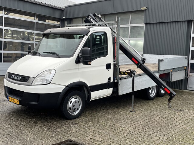 Een zeer nette Iveco Daily 40C17 170pk Be Clixstar Be combi Trekker Oplegger met Haib 026T kraan Pto aangedreven 4000kg laadvermogen 7,5 ton totaal gewicht 2 Steunpoten Liftas achter Cruise control Tachograaf 3-Persoons Open laadbak Pick-up P-up Bakwagen 1e eigenaar Euro 4