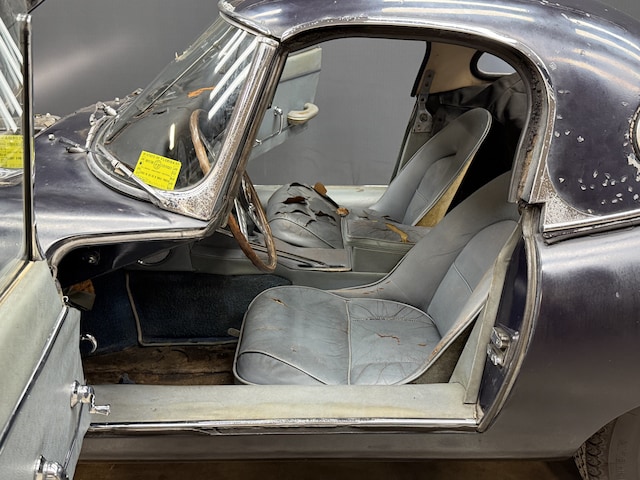 Waar de meeste E-Types door de jaren heen meerdere keren zijn gerestaureerd, bijgewerkt of cosmetisch opgefrist, is deze auto precies het tegenovergestelde. De lak is in gebruikte staat, maar wel ‘echt’. Het leer is gescheurd, maar in zeer originele staat. Alles draagt de sporen van tijd, niet van menselijk ingrijpen. Kortom: het bewijs van absolute authenticiteit dat verzamelaars en kenners vandaag de dag zelden nog aantreffen.