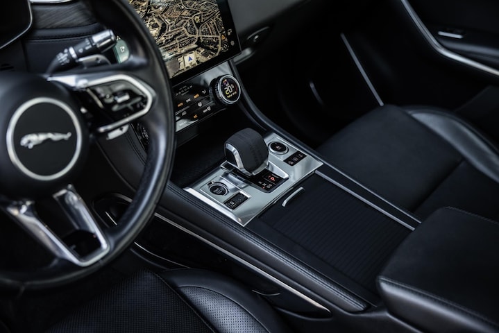 De meeste veranderingen waren er echter voor het interieur. Een gigantisch verschil zelfs met de eerste generatie. Het design valt nu in lijn met het nieuwste design van bijvoorbeeld de Range Rover (Sport) in de nieuwste generatie. In het midden het ogenschijnlijk zwevende scherm. Uiterst modern, groot en zeer intuïtief te bedienen. Het dashboard is volledig digitaal en geheel naar wens in te delen. Heel fraai zijn de sportstoelen met lederen bekleding in Ebony, elektrische verstelling en stoelverwarming. De lederen bekleding wordt eveneens prachtig doorgetrokken op het dashboard. Een fraai geheel met de RVS accenten en de chique houten sierlijsten. Het grote glazen elektrisch bediende panorama dak brengt licht in het interieur en geeft een luxe uitstraling. De Jaguar F-Pace in deze SE uitvoering beschikt over fraaie opties zoals draadloos Apple CarPlay / Android Auto en 360° camerasysteem. Het Meridian Surround audiosysteem klinkt fantastisch en bovendien zijn de luidsprekers prachtig afgewerkt in aluminium behuizing. De Pixel LED Matrix koplampen bieden een waanzinnige lichtopbrengst en de grootlichtassistent is spectaculair. Uiteraard beschikt de Jaguar over alle rijassistenten zoals adaptive cruise control, blind spot indicator, lane assist en verkeersbordherkenning. De achterklep is elektrisch bediend en een heel fijne opties is de af fabriek elektrisch uitklapbare trekhaak.