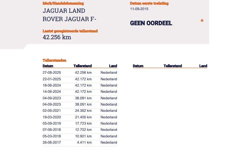 Laatst geregistreerde tellerstand RDW (27-08-2025): 42.256 km
