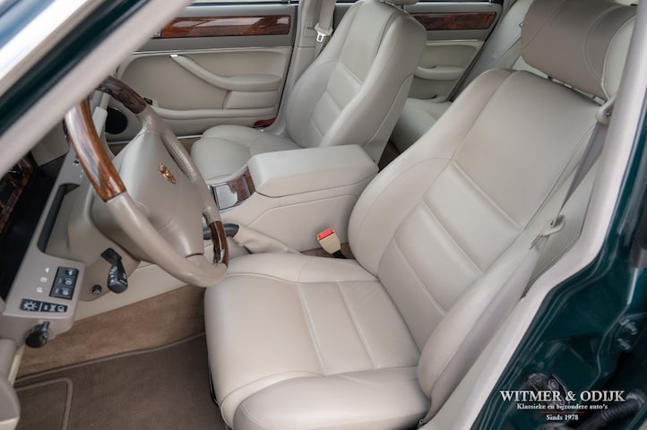 Het vinden van de mooiste en goede klassiekers is aanzienlijk moeilijker dan ze verkopen...hoe vaak we al niet teleurgesteld een prachtig beschreven icoon moesten laten staan, ontelbaar vaak. Verheugd ben je dan als je een auto als deze Jaguar vindt. Geheel origineel, perfect in de mooi glanzende diep donkergroene eerste lak, uiteraard schadevrij en nog ruikend als een nieuw exemplaar destijds. Meestal is er dan een handige neef die op de achtergrond de eigenaar een onrealistische verkoopprijs influistert. Gelukkig was de bejaarde eigenaar van deze XJ een realist en gunde hij mij de auto voor een prijs waar we beiden gelukkig van werden. En zo kan ik u deze schitterende XJ Executive aanbieden, laat de foto's u net zo enthousiast maken als ik werd toen ik de auto vond. Het interieur lijkt slechts enkele jaren oud, alle details als schakelaars, instapkant van de stoelen, hemelbekleding, houtinleg, etc. alles is nog even mooi en origineel. Deze XJ heeft een uitermate betrouwbare en zuinige zes-cilinder injectiemotor onder de fraaie motorkap. Heerlijk stil soepel rijdend en schakelend. Voorzien van kwalitatief hoogwaardig meublilair en automatische climat control is het een heerlijke reisauto, of een rijdend kantoor zo u wilt. Zakelijk ook zeer interessant en representatief, dagelijks en betrouwbaar gebruik is geen probleem. Deze XJ is rijklaar beschikbaar, bijtelling slechts €200,- per maand. Wordt afgeleverd inclusief nieuwe APK, garantie en onderhoudsbeurt. Inbouw van moderne voorzieningen als Bluettooth, Parc Distance Control, navigatie kunnen wij verzorgen.