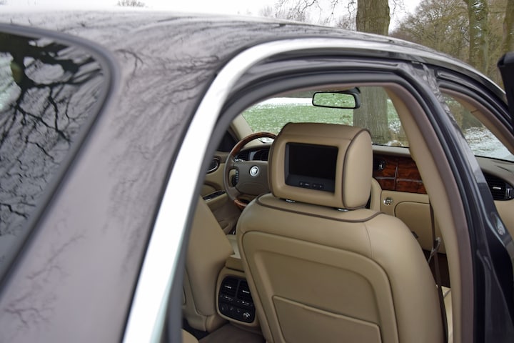 En wat is zo’n Jaguar X358 bijzonder. Met een nieuwprijs om en nabij €140.000,- mag je dat ook wel verwachten. Stoelventilatie. Verwarming van stoelen en achterbank. Adaptieve cruise control, twee separate zetels waar normaal gesproken een achterbank te vinden is, natuurlijk ook elektrisch verstelbaar. Multimedia in de hoofdsteunen. Het geluidssysteem bedien je zelfs vanaf de achterbank.