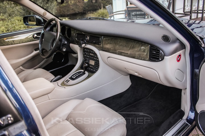 This beautiful Jaguar XJR was originally delivered in 2002 in the stylish color Pacific Blue with perfectly matching beige leather upholstery. The Dutch owner took the car with him to his residence in France, where it was driven most of its first years. In 2006, the same owner brought the car back to the Netherlands and re-registered it in the Netherlands. This British saloon has been maintained with the utmost love and care throughout the years. This is evident not only in the car itself, but also in the extensive (almost complete) maintenance history that accompanies the car. After the death of the first Dutch owner, his daughter took possession of the car. This beautiful Jaguar XJR is therefore a so-called one-family car.
