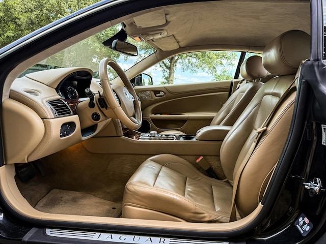 Deze Jaguar XKR 5.0 V8 uit oktober 2009 is een zeldzame vondst. Uitgevoerd in stijlvol zwart metallic, met een contrasterend luxe interieur in beige leder, biedt deze cabriolet een unieke combinatie van Britse klasse, sportieve flair en hoogwaardig comfort.