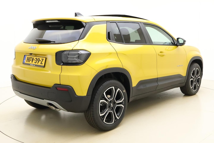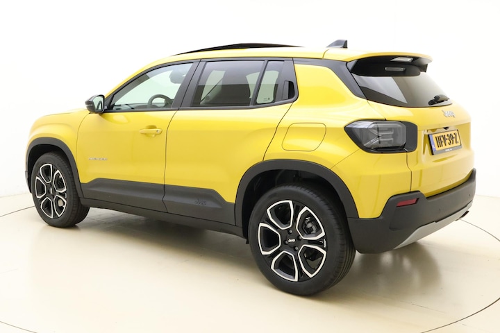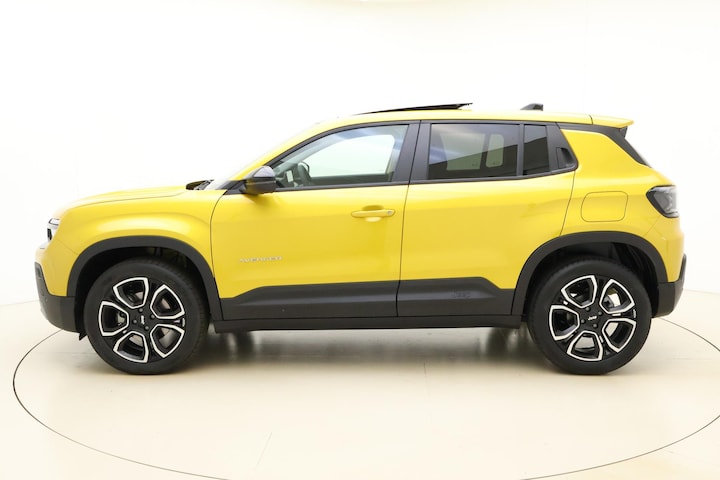 Modern design en bijzondere techniek bepalen de kwaliteiten van de hybride Jeep Avenger. Deze nieuwe auto is nu uit voorraad leverbaar. Hybride auto's zoals deze staan er om bekend dat ze zuinig zijn met brandstof. Twaalf maanden per jaar een zomergevoel krijgt u van het elektrisch bediende glazen panorama dak. En 24 uur per dag het gemak van de elektrisch bedienbare achterklep. Tot de voorzieningen van deze auto behoren 18 inch lichtmetalen velgen, Full LED koplampen, elektrisch inklapbare buitenspiegels, in delen neerklapbare achterbank, LED-achterlichten en elektrisch bedienbare ramen achter.