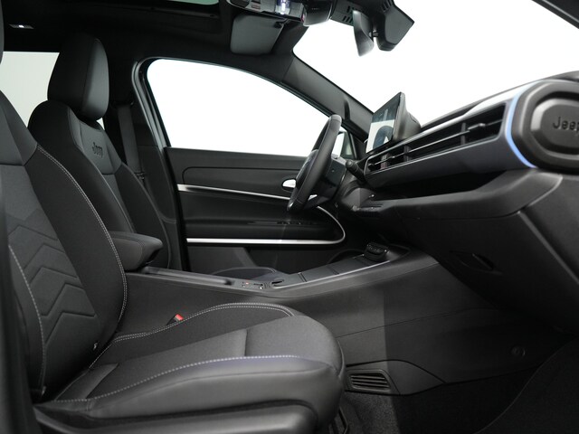 Iedere rit in een elektrische auto is een weldaad: u rijdt ontspannen en in alle rust, er is volop vermogen en u komt verkwikt op uw bestemming aan. Power, stilte en nul procent uitlaatgas krijgt u met de elektromotor. Het is een nieuwe auto, hij is nu uit voorraad leverbaar. De krachtige motor geeft deze Jeep uitstekende prestaties. Het elektrisch bediende glazenpanorama dak zorgt voor licht en gevoel van ruime. U wordt in deze auto ook getrakteerd op LED koplampen, zonwerend getint glas en LED-achterlichten. Ongelukken of parkeerschade? Dat gebeurt u niet meer, met de achteruitrijcamera. Adaptive cruise control is veilig en comfortabel. De snelheidsregelaar houdt automatisch afstand tot het voertuig dat voor u rijdt. De auto is uitgerust met een uitgebreid audio-installatiesysteem, waarbij online muziek te beluisteren is via bluetooth een usb-aansluiting, waarmee u ook devices oplaadt. Met de draadloze telefoonlader laadt uw smartphone automatisch op tijdens het rijden. De regensensor is alert op iedere druppel op de voorruit en stuurt het ruitenwissersysteem aan naar gelang de hoeveelheid neerslag. De Jeep is standaard voorzien van: keyless entry, airconditioning en isofix-aansluiting. Geavanceerde veiligheidssystemen kijken tijdens elke rit met u mee en schatten continu de risico's in. Gaat u buiten de lijnen van uw rijstrook zonder richting aan te geven, dan waarschuwt de aanwezige lane assist direct. Natuurlijk is dit een splinternieuwe auto en hij wordt dus geleverd met volledige fabrieksgarantie. Daarbij kunnen we u verschillende gunstige financieringsvormen aanbieden. We maken graag een afspraak met u.