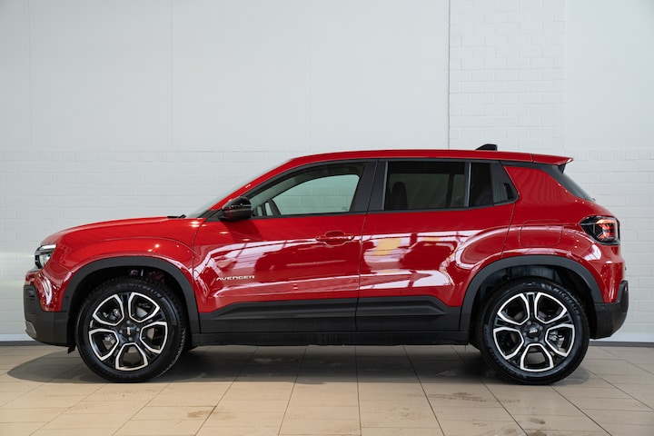 Kijk naar de onvergelijkbare vormgeving. De Jeep Avenger is een elektrische auto die zijn bijzondere karakter niet voor de buitenwereld verbergt. De prestaties van de elektromotor kunnen de vergelijking met een brandstofmotor moeiteloos aan. De krachtige motor geeft deze Jeep uitstekende prestaties. Ook is de auto voorzien van: 18 inch lichtmetalen velgen, Full LED koplampen, in delen neerklapbare achterbank en LED-achterlichten. De achteruitrijcamera vergemakkelijkt achteruit inparkeren. U ziet duidelijk wat er achter de auto gebeurt. Adaptive cruise control houdt de ingestelde snelheid vast en houdt automatisch afstand tot uw voorligger. Functies activeren en storingen opsporen? Bij deze auto gaat het eenvoudig via uw smartphone. Overal en altijd. U kunt tijdens de rit uw ogen steeds op de weg houden, want het audio-installatiesysteem kunt u bedienen vanaf het stuur. Smartphones die zonder snoer kunnen opladen halen simpel een volle accu via de draadloze oplaadmogelijkheid voor telefoons. U bent in deze Jeep ook voorzien van automatische airconditioning, regensensor en automatisch dimmende binnenspiegel. De Jeep Avenger is ook voorzien van ADAS. Deze Advanced Driver Assistence Systems fungeren als extra ogen en oren: ze houden voor u de weg in de gaten en grijpen in wanneer dat nodig is. Het Lane-keeping systeem garandeert dat u zich niet onverhoeds buiten de lijnen van de rijstrook begeeft. Een belangrijk veiligheidssysteem in deze auto is de vermoeidheidsherkenning, die u een duidelijk signaal geeft wanneer u achter het stuur in slaap dreigt te vallen. De veiligheid van deze auto wordt verder verhoogd door dodehoekdetectie, hill hold functie, autonoom remsysteem en bandenspanningcontrolesysteem. Deze elektrische auto staat klaar met een volle accu. Een proefrit maken is zo geregeld. Neem even contact op en we maken een afspraak!