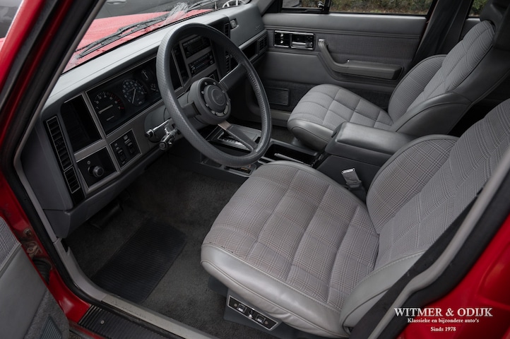 De klassieker van Jeep, de Cherokee. Praktisch, leuk, stoer, extreem degelijk gebouwd en dankzij de hoge bodemvrijheid geschikt voor off-road avonturen. Het tijdloze iconische ontwerp is voor veel fabrikanten de inspiratiebron geweest voor de tegenwoordig zo populaire SUV. Ingetogen bescheiden, vergeleken met al die vol plastic gehangen gladde nouveau-riche auto's van nu. Zeker voor Amerikaanse begrippen compact en overzichtelijk, in ons verkeersklimaat uitermate bruikbaar. Comfortabel voor dagelijks gebruik in deze automaat versie. Zie de geweldige stoelen met traditioneel ruitmotief, het drie spaaks stuurwiel en dat typisch Amerikaanse dashboard. Alles zo herkenbaar Cherokee, sympathieker SUV rijden bestaat niet. Het hier aangeboden exemplaar is een bijzondere vondst te noemen, origineel dus ongerestaureerd prachtig de tijd doorstaan. Slechts 87.000 mijl gereden en zichtbaar perfect verzorgd. De carrosserie en het chassis zijn roestvrij, de auto heeft zelfs de originele niet verkleurde lak nog. Ook het interieur is nog bijna zoals dat in 1988 de fabriek verliet. Leuk detail is de aanwezigheid van het originele service- en instructieboekje. Voor wie de auto zakelijk kan rijden, gezien de leeftijd van deze Cherokee is de vriendelijke bijtellingsregeling van toepassing, laat ons u die voorrekenen. Rijklaar is deze Jeep, bij voorkeur op afspraak, bij ons te bezichtigen.