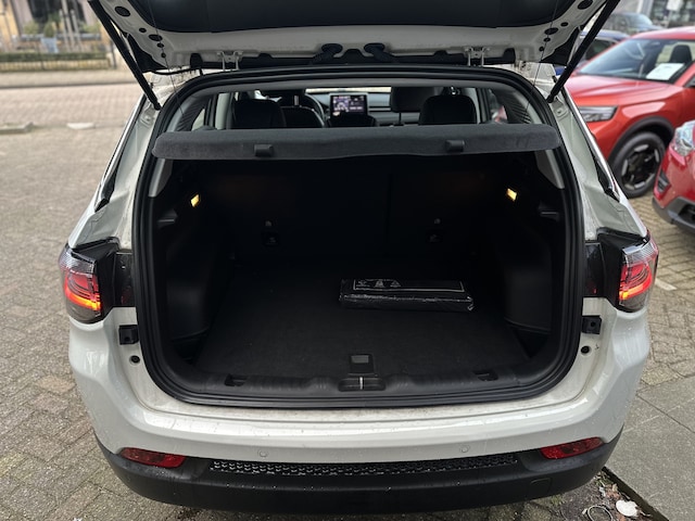 Met het digitale dashboard van deze auto is de aanpassing van uw cockpitinterface een fluitje van een cent. De achteruitrijcamera brengt precies in zicht wat zich achter u bevindt en toont een glashelder beeld op hoge resolutie. Een geluidssignaal waarschuwt hoeveel ruimte u nog heeft. Adaptive cruise control is een comfortabele en veilige optie. Het systeem reguleert de snelheid en houdt automatisch afstand tot uw voorligger. Mocht zich een probleem voordoen, dan krijgt u via remote services op uw smartphone te zien wat er precies aan de hand is, waar u ook bent. Onderweg kunt u veilig genieten van het audio-installatiesysteem met dab-radio. Want in deze Jeep bedient u het vanaf het stuurwiel. En deze auto heeft ook automatische airconditioning, regensensor, keyless entry, automatisch dimmende binnenspiegel, lederen stuur en bagage afdekhoes als standaard uitrusting.
