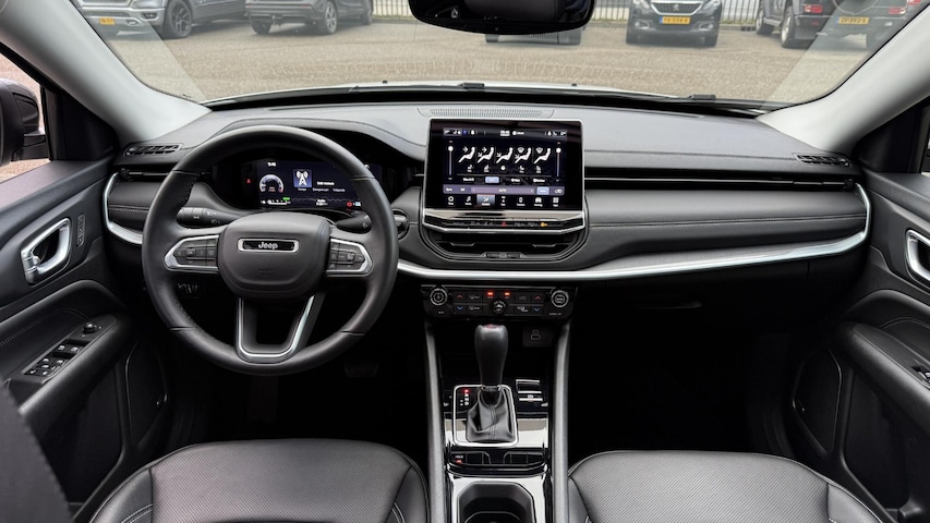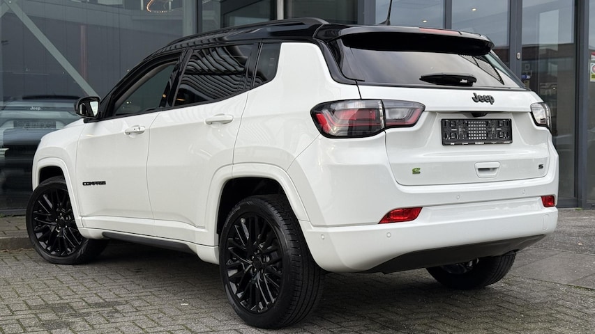 Jeep Compass in complete Summit uitvoering in Alpin White. E-hybrid technologie zonder stekker maar een zuinig verbruik. Originele nieuwprijs van 51600 euro. Onder andere uitgerust met;