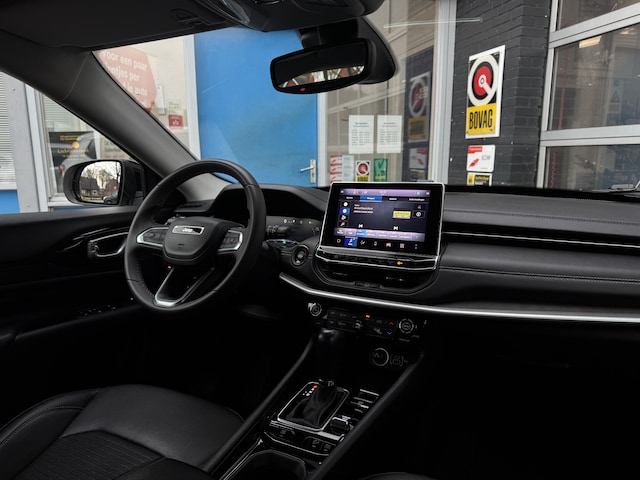 Het digitale dashboard stelt u in staat uw cockpitinterface te personaliseren. Een handige optie is de parkeerhulp met achteruitrijcamera. Achteruitrijden, inparkeren en manoeuvreren gaat gemakkelijker dan ooit. Met adaptive cruise control houdt deze auto automatisch afstand tot uw voorligger. Uw smartphone is tegenwoordig de sleutel tot heel veel. Ook voor deze auto. Remote services, noemen we dat. Waar u ook bent, contact houden is een eitje. U kunt het audiosysteem met DAB-ontvangst en het navigatiesysteem bedienen met de knoppen op het stuur. Deze Jeep is voorzien van automatische airconditioning, draadloos opladen, regensensor, keyless entry, automatisch dimmende binnenspiegel en isofix-aansluiting.