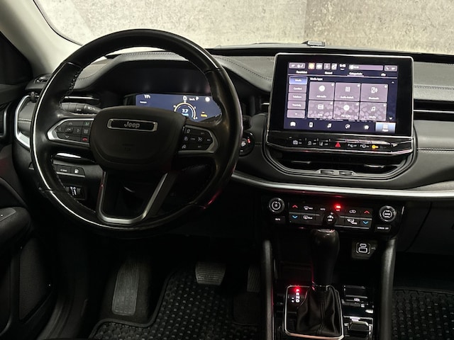 De digitale wereld van mobiliteit verwelkomt u; op het digitale dashboard wordt alles weergegeven om uw rit gemakkelijk en veilig te maken. Kommaar-kommaar-kommaar, aldus de achteruitrijcamera. Iedere centimeter vrije ruimte komt haarscherp in beeld. Schadevrij inparkeren maar! Adaptive cruise control is een comfortabele en veilige optie. Het systeem reguleert de snelheid en houdt automatisch afstand tot uw voorligger. Als u regelmatig met een aanhanger of een fietsendrager op pad bent, is de afneembare trekhaak een praktische extra. Een smartphone met internetverbinding legt eenvoudig overal contact met de auto. U kunt functies activeren en de conditie van de auto monitoren. Met full map navigatiesysteem, WIFI-hotspot, automatische airconditioning, draadloos opladen, DAB ontvangst en regensensor is deze Jeep helemaal compleet.