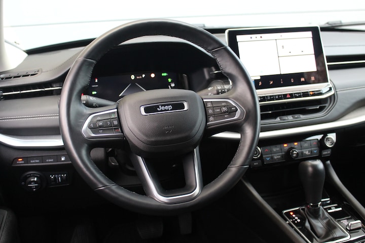 Soepel rijgedrag, een krachtige acceleratie en een laag brandstofverbruik, de hybride Jeep Compass is een innovatieve auto. De combinatie van een verbrandingsmotor en een elektromotor zorgt voor prima rij-eigenschappen en een laag brandstofverbruik. Een blik van dichtbij onthult meteen twee mooie pluspunten: het lederen interieur en de elektrisch bedienbare achterklep. Tot de voorzieningen van deze auto behoren 19 inch lichtmetalen velgen, trailer assistent, in hoogte verstelbare passagiersstoel, extra getint glas, in delen neerklapbare achterbank en LED-achterlichten. Het digitale dashboard rekent mee, denkt mee en rijdt mee. Alle info overzichtelijk in beeld, overal. Altijd achter zicht, nooit meer nekkramp! De achteruitrijcamera maakt het supermakkelijk. Met adaptive cruise control houdt deze auto automatisch afstand tot uw voorligger. Deze Jeep Compass is voorzien van remote services. Via uw smartphone bedient u diverse functies ook op afstand en krijgt u informatie over de status van uw auto. Van A naar B zonder omwegen: altijd uw eigen full map navigatiesysteem aan boord! Met automatische airconditioning, draadloos opladen, DAB ontvangst, regensensor, keyless entry en automatisch dimmende binnenspiegel is deze Jeep helemaal compleet. Als bestuurder van deze Jeep bent u nooit alleen. U wordt onderweg bijgestaan door technologische hulpmiddelen die samen met u de weg in de gaten houden. Als het nodig is, grijpen ze zelfs in, door te remmen of bij te sturen. Onderweg zorgt verkeersborddetectie ervoor dat u geen waarschuwingsbord mist. Het Lane-keeping systeem garandeert dat u zich niet onverhoeds buiten de lijnen van de rijstrook begeeft. Forward collision warning is een automatisch waarschuwingssysteem dat direct in werking treedt bij gevaar voor een kop-staartbotsing. In deze Jeep vinden we verder een hill hold functie, vermoeidheidsherkenning, autonoom remsysteem en bandenspanningcontrolesysteem. Bent u nieuwsgierig naar deze auto? Laat het ons dan snel weten.