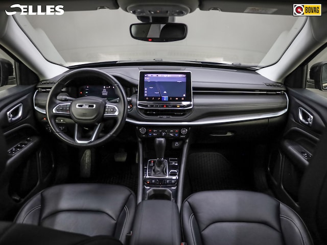 Dankzij het digitale dashboard in deze auto kan u de interface van uw cockpit personaliseren. Alles vrij achter? De achteruitrijcamera laat het meteen zien. Adaptive cruise control is een comfortabele en veilige optie. Het systeem reguleert de snelheid en houdt automatisch afstand tot uw voorligger. Connected Services zorgen ervoor dat de belangrijkste functies en data van de auto altijd en overal te checken zijn. Gewoon via de app op de smartphone. Het full map navigatiesysteem en het audiosysteem (met DAB-ontvangst!) bedient u met knoppen op het stuur. Deze Jeep is voorzien van automatische airconditioning, draadloos opladen, regensensor, keyless entry, automatisch dimmende binnenspiegel en lederen stuur.
