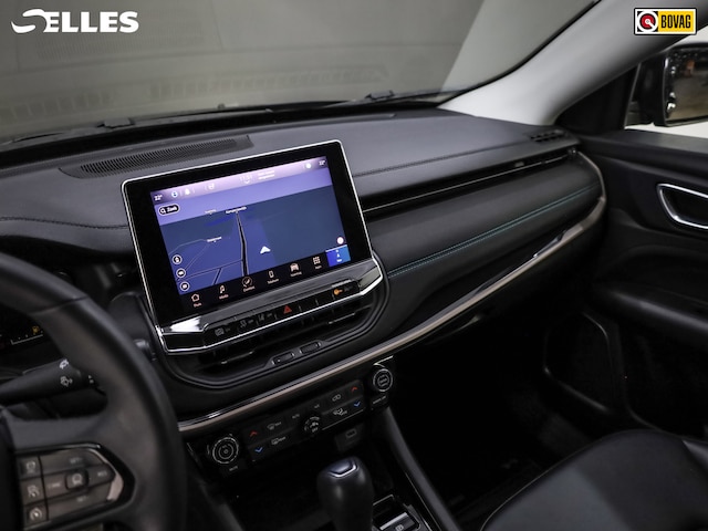 Uw rit wordt comfortabel en veilig gemaakt door het digitale dashboard dat alles projecteert wat u wenst in de digitale wereld van mobiliteit. Afstand schatten bij het achteruitrijden? Niet nodig. U weet het precies, dankzij de achteruitrijcamera. Adaptive cruise control houdt de ingestelde snelheid vast en houdt afstand tot het voertuig voor u. Connected Services voegt nog meer comfort en veiligheid toe aan deze auto. Kies de muziek waarvan u houdt, dankzij de DAB-radio klinkt het altijd geweldig. Intussen bedient u het audiosysteem en het full map navigatiesysteem met de knoppen op het stuur of met uw stem. Deze Jeep is voorzien van automatische airconditioning, draadloos opladen, regensensor, keyless entry, automatisch dimmende binnenspiegel en lederen stuur.