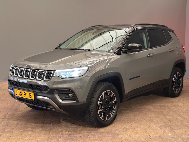 Ontspannen en zorgeloos autorijden, dat doet u met deze Jeep Compass. Deze auto uit heeft nauwelijks gereden, met een tellerstand van slechts 10697 kilometer. De elektromotor zorgt voor snel en traploos optrekken bij ieder stoplicht. Een van de vele voordelen van deze hybride auto. Bij de uitrusting van deze auto horen onder meer 18 inch lichtmetalen velgen, LED koplampen, trailer assistent, in hoogte verstelbare passagiersstoel, extra getint glas en in delen neerklapbare achterbank. Het digitale dashboard stelt u in staat uw cockpitinterface te personaliseren. De achteruitrijcamera brengt precies in zicht wat zich achter u bevindt en toont een glashelder beeld op hoge resolutie. Een geluidssignaal waarschuwt hoeveel ruimte u nog heeft. Als u de adaptive cruise control inschakelt, regelt de auto zelf de snelheid en de afstand tot de auto voor u. De radio harder of zachter zetten of iemand uit uw contactenlijst bellen. Dankzij de spraakbediening doet u dit allemaal met uw stem. Wat is de onderhoudsstatus van deze auto? U checkt het snel, simpel en overal via uw smartphone. U bent in deze Jeep ook voorzien van automatische airconditioning, draadloos opladen, DAB ontvangst, regensensor, keyless entry en automatisch dimmende binnenspiegel. Deze Jeep biedt u niet alleen comfort en rijplezier, maar ook veiligheid. Actieve veiligheidssystemen houden voor u de weg in de gaten en reageren op onvoorziene situaties voordat u dat kunt. Onderweg fungeert de verkeersbord-detectie als het ware als uw bijrijder en attendeert u op de verkeersborden langs de weg. Ongemerkt buiten de rijstrook raken? Nee hoor, het Lane-keeping systeem waarschuwt en corrigeert. Om te voorkomen dat u tijdens lange ritten achter het stuur in slaap valt, is deze auto voorzien van vermoeidheidsherkenning. De auto is ook uitgerust met hill hold functie, frontale botsbescherming en bandenspanningcontrolesysteem. Maak nu een afspraak voor een proefrit!