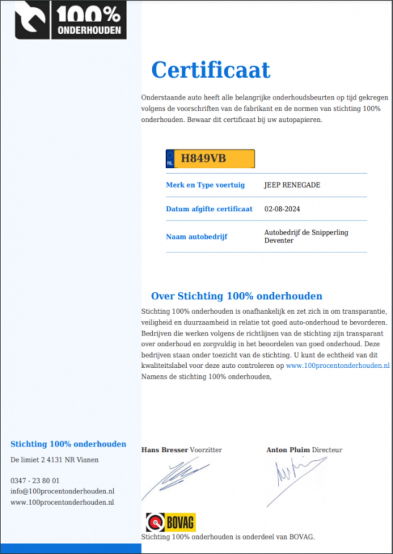 | BTW auto | Ja, incl. BTW |
