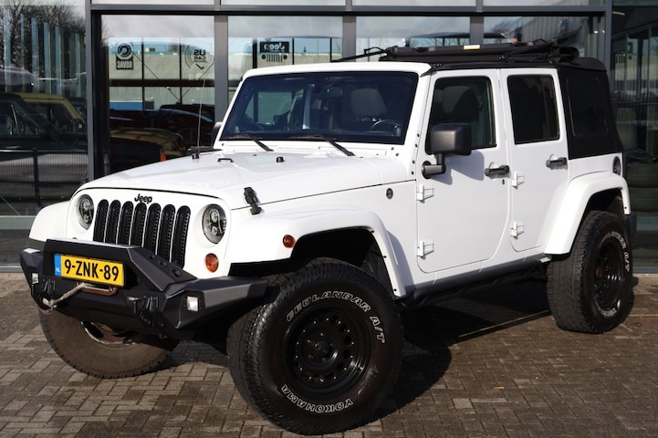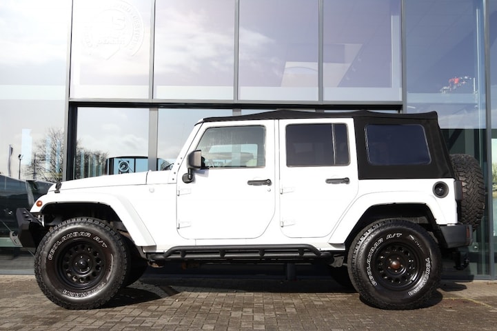 Ruige Jeep Wrangler JK Unlimited in Bright White! Voorzien van een (mopar) Soft top incl. sunrider functie.