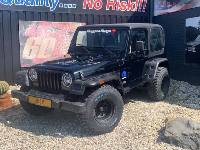 Dikke zwarte TJ Wrangler in Rugged Ridge uitvoering.