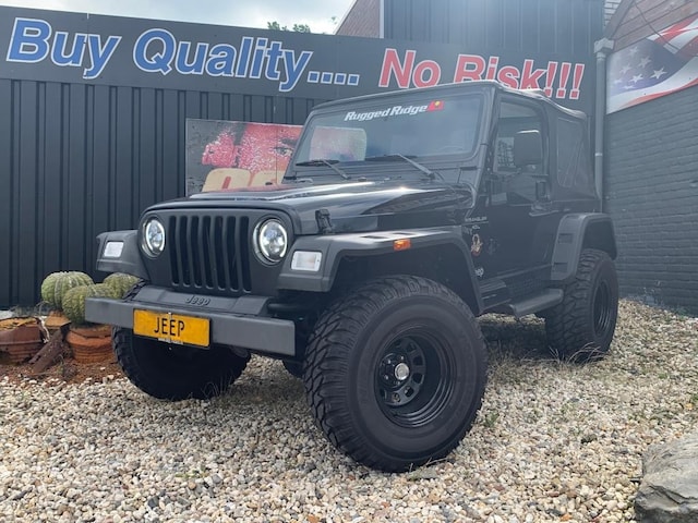 Superdikke Jeep TJ Wrangler in zwarte Rugged Ridge Edition.