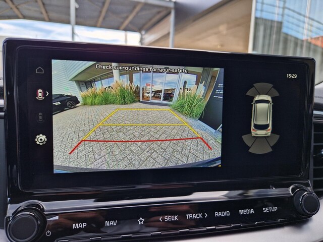 Aan boord van deze Kia houden verschillende geavanceerde systemen voor u de weg in de gaten. Ze waarschuwen u voor noodsituaties en kunnen in een aantal gevallen ook zelf ingrijpen. Het Lane-keeping systeem garandeert dat u zich niet onverhoeds buiten de lijnen van de rijstrook begeeft. Als een fietser of andere weggebruiker zich net buiten uw zichtveld naast de auto bevindt, slaat de actieve dodehoekdetectie meteen alarm. Mindert een voorligger onverwachts te veel vaart, dan komt de forward collision warning in actie en waarschuwt meteen. U bent mede dankzij hill hold functie, vermoeidheidsherkenning, autonoom remsysteem en bandenspanningcontrolesysteem steeds veilig onderweg.