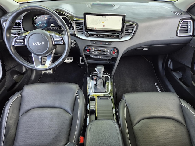Het comfortniveau is hoog met onder andere climate control, lederen bekleding, stoelverwarming en -ventilatie, stuurverwarming en zelfs achterbankverwarming. Technologie en veiligheid komen samen in functies zoals adaptieve cruise control, lane assist, dodehoekdetectie, keyless entry en start, een achteruitrijcamera en parkeersensoren voor en achter. Binnenin biedt de auto een volledig digitaal instrumentenpaneel, een full map navigatiesysteem, Apple CarPlay, Android Auto, een draadloze telefoonlader en DAB-radio. Met een trekgewicht van 1300 kg, elektrische achterklep, 17” lichtmetalen wielen en twee laadkabels is deze Ceed een veelzijdige keuze voor wie zakelijkheid en comfort wil combineren.
