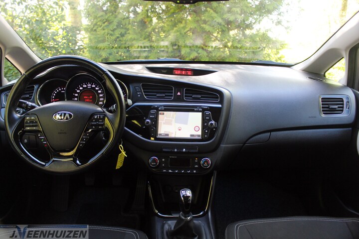 Nekkramp en verdraaide schouders zijn verleden tijd. Door de achteruitrijcamera is iedere meter achter de auto glashelder in beeld. Tijdens de rit bedient u het audiosysteem en het full map navigatiesysteem met de knoppen op het stuur. De auto is ook uitgevoerd met electronic climate control. Om de veiligheid onderweg te verhogen, heeft deze Kia zowel een automatisch inschakelbare verlichting als een regensensor aan boord, zodat hij zelf de verlichting en de ruitenwissers kan inschakelen. Niet te snel, niet langzaam maar precies goed: laat dat maar over aan de cruise control. Wat u ook in deze auto kunt vinden zijn automatisch dimmende binnenspiegel, centrale deurvergrendeling met afstandsbediening en verstelbaar stuur.