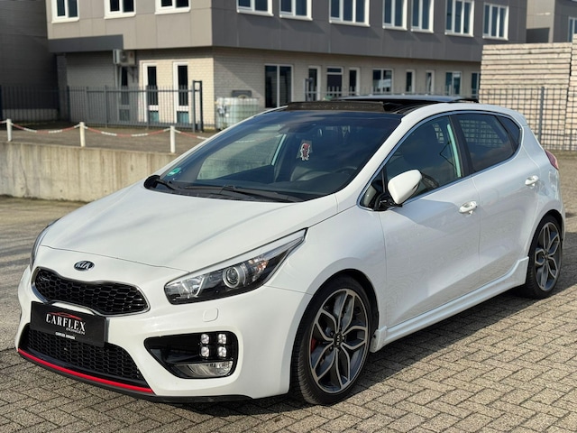 Hierbij een Kia Cee'd 1.6 TGDI GT Track 205pk van bouwjaar 2017 met 146xxxkm op de teller / Ziet er netjes uit zowel van binnen en van buiten / Minimale gebruikssporen / Betreft een GT uitvoering met mooie opties oa; Schuif-kanteldak, LED-XENON, Alcantara stoelen, Achteruitcamera, Navigatie, Stoelverwarming enz. / Volledig onderhoudhistorie aanwezig / APK tot September 2027 / Alle inruil mogelijk tegen handelsprijs /