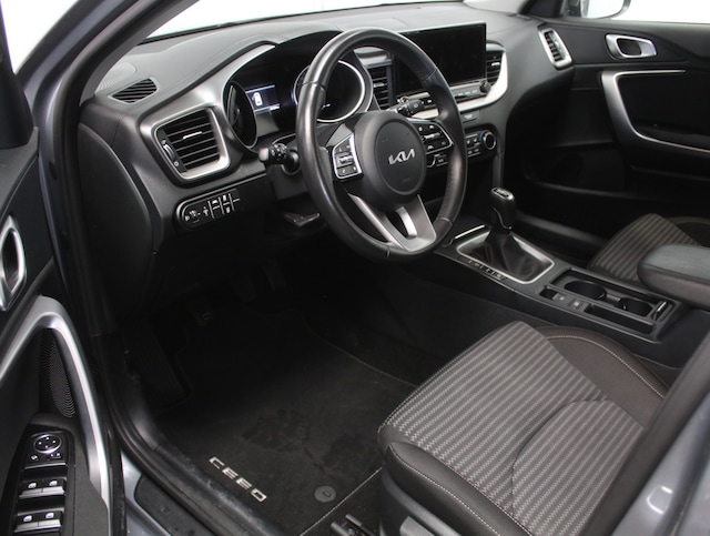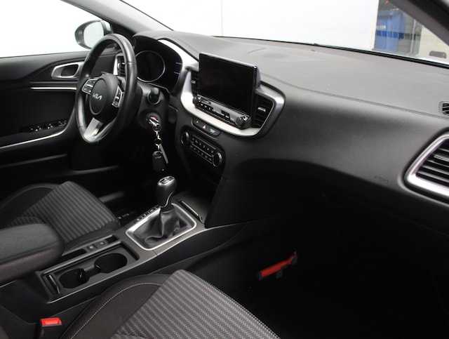 Een handige optie is de achteruitrijcamera. Achteruitrijden, inparkeren en manoeuvreren gaat gemakkelijker dan ooit. Deze Kia Ceed is 'connected'. Belangrijke functies worden permanent gemeten en zijn uit te lezen via een speciale app, ook op afstand. Onderweg kunt u veilig genieten van het audiosysteem met DAB-radio en het full map navigatiesysteem. Want in deze Kia bedient u ze vanaf het stuurwiel of met uw stem. Tot de standaard uitrusting van deze auto hoort ook electronic climate control. Natuurlijk is een complete auto als deze ook voorzien van sensoren die de omgeving in de gaten houden. Deze Kia heeft niet alleen een automatisch inschakelbare verlichting aan boord, maar ook een regensensor. Deze auto is voorzien van automatisch dimmende binnenspiegel, lederen stuur, centrale deurvergrendeling met afstandsbediening en lederen versnellingspook.