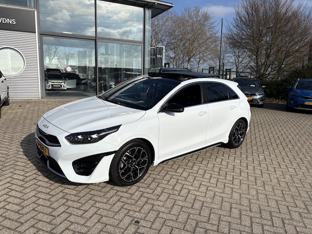 De Kia Ceed 1.0 T-GDi GT-Line uit 2022 is een benzine-auto met een krachtige 120 PK motor. Met zijn opvallende witte kleur en zijn vlotte hatchback design (beschikbaar in zowel 3 deurs als 5 deurs uitvoering), is dit een auto die zeker de aandacht zal trekken op de weg.