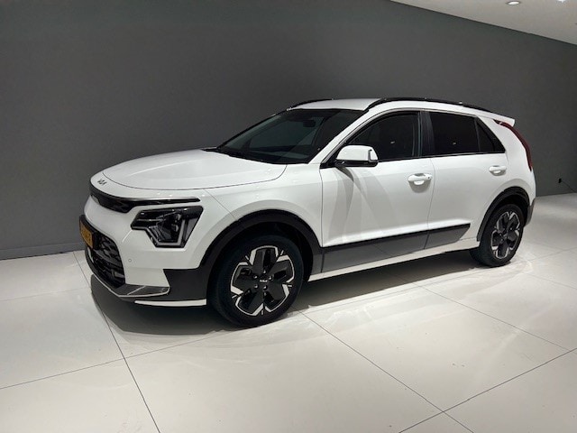 Volledig elektrische Kia Niro met 3 fase lader in de complete Air-uitvoering en onder meer uitgerust met adaptieve cruise controle, full map navigatie, parkeersensoren voor en achter in combinatie met een achteruitrijcamera, 17 Inch lichtmetalen velgen, elektrisch verstelbare bestuurdersstoel, stoel- en stuurwielverwarming, climate controle, draadloze telefoonoplader en nog tal van comfort- en veiligheid verhogende items.