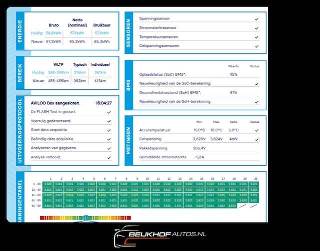Accu: 64 kWh, Conditie: 87%