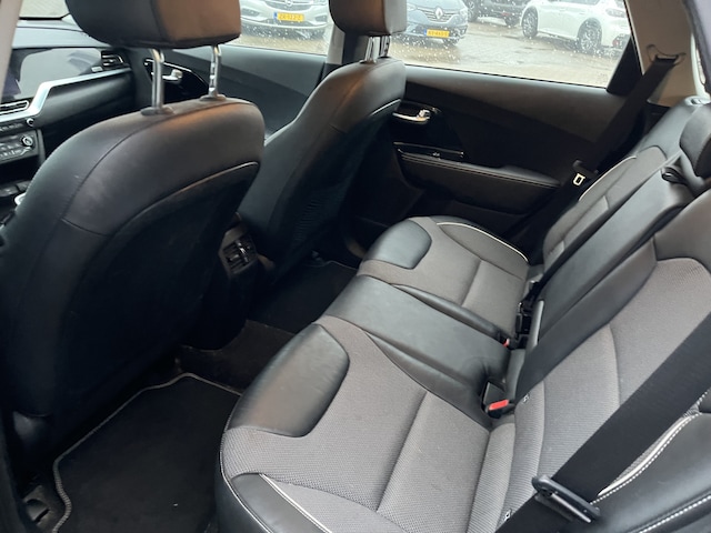 De achteruitrijcamera maakt inparkeren gemakkelijker dan ooit. Met adaptive cruise control houdt deze auto automatisch afstand tot uw voorligger. In deze e-Niro vindt u schakelaars op het stuur om het full map navigatiesysteem te bedienen en het audio-installatiesysteem met DAB-ontvangst. Natuurlijk is er ook electronic climate control aanwezig. De automatisch inschakelbare verlichting en regensensor zorgen dat onderweg automatisch de verlichting en de ruitenwissers worden ingeschakeld. Daarmee nemen ze u veel werk uit handen. De Kia is standaard voorzien van: schakelpaddles aan het stuur, keyless entry en automatisch dimmende binnenspiegel.