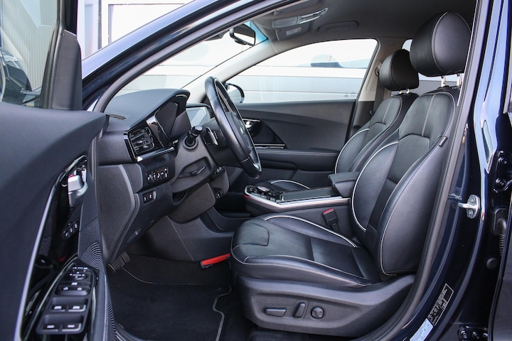 De Kia e-Niro is een fijne en comfortabele reisgenoot met een ruim (realistisch) bereik van tussen de 325 en 400 kilometer (afhankelijk van de omstandigheden en gereden route). Onderweg kan je de e-Niro snelladen met een maximaal snellaadvermogen van 77 kW en hiermee kan hij in 44 minuten van 20% naar 80% geladen worden (met een laadsnelheid van 350 kilometer per uur). Thuis heb je natuurlijk de mogelijkheid om een laadpaal te installeren voor een type 2 lader, deze e-Niro is voorzien van de drie fasen laadmogelijkheid met een maximum van 11 KW. Met een 3 fase en 16 ampère lader (11 kW) kan je de Kia dan in 7 uren van geheel leeg naar geheel vol laden (met een laadsnelheid van 54 kilometer per uur). De 230V thuislader (2.3 kW) laad met een maximale snelheid van 11 kilometer per uur en zou in theorie een geheel lege e-Niro in 32 uur en 45 minuten compleet vol laden. In de praktijk zal je de auto natuurlijk nooit geheel leeg rijden en hierdoor zijn de laadtijden naar een geheel volle accu thuis dan ook een stuk korter. Heb je hem s'avonds aan de stroom gezet dan kan je met een gerust hart gaan slapen wetende dat je Kia de volgende dag weer een flink rijbereik heeft!