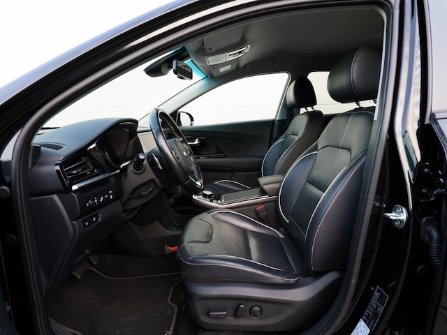 De acceleratie van de elektrische Kia e-Niro is indrukwekkend. Dit exemplaar heeft 130909 kilometer gelopen, het bouwjaar is 2020. De voordelen van de elektromotor spreken voor zich: stil, schoon en snel! Deze Kia is voorzien van een mooie en comfortabele lederen bekleding. 's Winters op pad gaan kan een behoorlijke uitdaging zijn. Daarom is deze Kia e-Niro voorzien van weldadige verwarmbare voorstoelen. Daglicht valt vrij binnen door het elektrisch bediende glazen panoramadak. In de winter wil iedereen mee. Zou dat komen door de verwarmde achterbank? Je wordt in deze auto ook getrakteerd op 18 inch lichtmetalen velgen, LED koplampen, donker getint glas achter, in delen neerklapbare achterbank, LED-achterlichten en verstelbare lendensteunen.