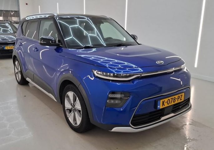 Deze blauw metallic KIA Soul met het grote accupakket, 64kwh, is uitgerust met het luxe executive optiepakket.