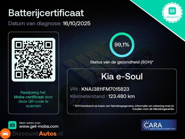 Bovenstaande vraagprijs betreft een scherpe internet prijs !! Heeft u interesse? Laat het ons dan zo snel mogelijk weten, dan kunnen we deze Kia E-Soul ComfortLine 64 kWh voor een proefrit reserveren. - Wij berekenen GEEN afleveringskosten. - Inruil is mogelijk. - Onze occasions zijn met onderhoudsboekjes en Nationale Auto Pas (NAP) - Incl afleverbeurt, Airco check en nieuwe APK in overleg. Wij kunnen de tenaamstelling van uw nieuwe occasion verzorgen. Voor een prijsindicatie kunnen nemen. van uw in te ruilen auto ontvangen wij graag enkele foto's via Whatsapp op 06-53165720 Kom gerust langs voor een geheel vrijblijvende bezichtiging en/of proefrit. Om teleurstelling te voorkomen adviseren wij u om van te voren te informeren naar de beschikbaarheid, of de auto te reserveren. Wij zijn aangesloten bij de RDW de VWE de RDC en de Nationale Autopas. *Aan onze advertenties is de groots mogelijke zorg besteed, echter aan deze advertentie kunnen geen rechten worden ontleend. Wij werken alleen op afspraak, zodat wij voor elke klant ruim de tijd kunnen nemen.