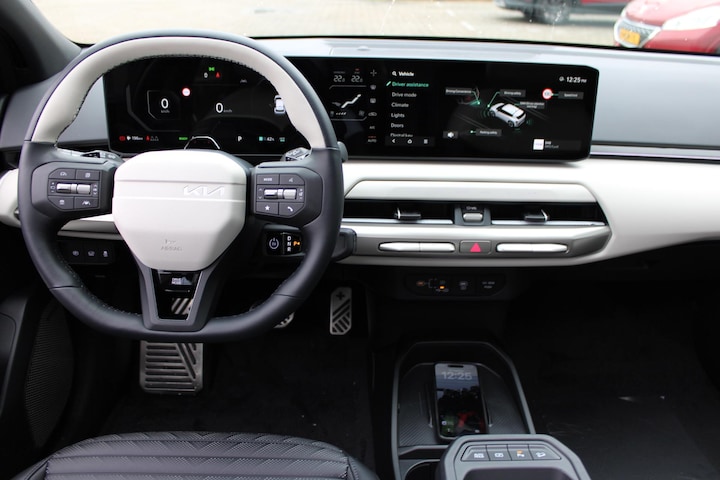 In één oogopslag heb je alle benodigde functies onderweg in beeld, dankzij het slim ingedeelde digitale dashboard. Geen nekkramp of spiegelwerk meer bij het achteruitrijden: de achteruitrijcamera kijkt en ziet alles! Adaptive cruise control houdt de ingestelde snelheid vast en houdt automatisch afstand tot jouw voorligger. Rijden-stilstaan, rijden-stilstaan. Niks is irritanter en vermoeiender dan filerijden. Daar heeft deze Kia EV4 een oplossing voor: de file assistent, die met radarmeting permanent het tempo aanpast op de voorligger. Zelfs als die stopt. Spraakbediening herkent jouw stem en voert opdrachten uit terwijl jij beide handen aan het stuur houdt. Extra opties op deze auto zijn: connected drive services, premium audiosysteem, full map navigatiesysteem, electronic climate control, draadloos opladen en regensensor.
