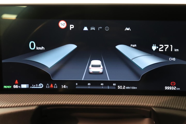 De nieuwste veiligheidssystemen komen in deze Kia EV6 samen. De camera van de verkeersborddetectie herkent verschillende soorten verkeersborden en toont deze op het dashboard. Het forward collision warning-systeem waarschuwt indien een botsing dreigt met een voorliggend of tegemoetkomend voertuig. Het systeem voor vermoeidheidsherkenning neemt het waar als uw concentratie verslapt en geeft u dan een waarschuwing. Met voorzieningen als head-up display, frontale botsbescherming en bandenspanningcontrolesysteem, bent u altijd veilig onderweg.