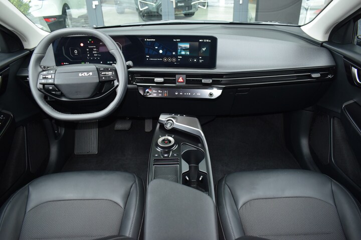 Deze Kia EV6 Light Edition (63 kWh) is een volledig elektrische SUV met een comfortabele en moderne uitrusting. De auto beschikt over automatische climate control, cruise control (adaptief), keyless entry en elektrisch verstelbare en verwarmde buitenspiegels. Voor extra comfort zijn de voorstoelen en het stuurwiel verwarmd en is een regensensor aanwezig. Het infotainmentsysteem bestaat uit een groot full-map navigatiesysteem met Kia Connect, radio, spraakbediening en smartphone-integratie via Apple CarPlay en Android Auto. Op het gebied van veiligheid en ondersteuning is de EV6 uitgerust met rijbaanassistentie, file-assistent, parkeersensoren voor en achter, ABS, ESP en diverse airbags. Het exterieur wordt gekenmerkt door 19-inch lichtmetalen velgen, volledige LED-verlichting en extra getint glas. Hierdoor is deze Light Edition een complete en comfortabele elektrische auto met een zeer praktische standaarduitrusting.