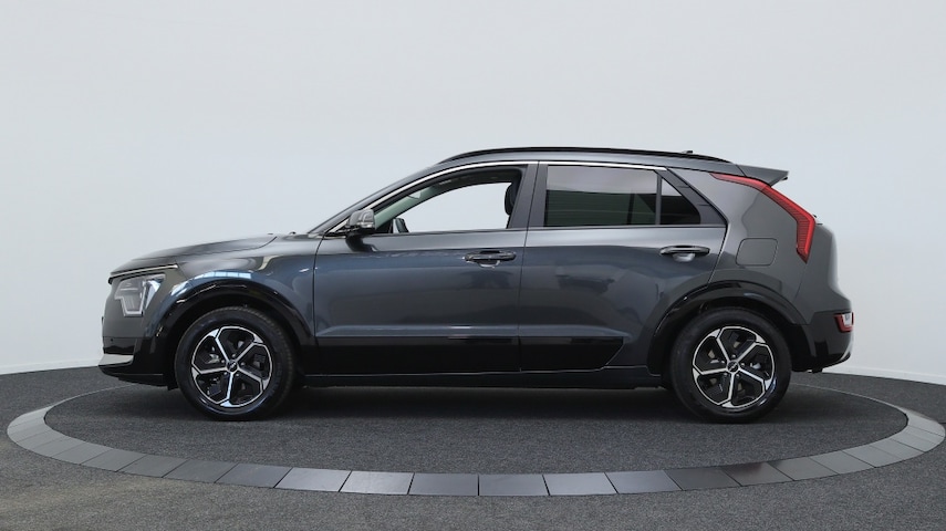De Kia Niro 1.6 GDi Hybrid Dynamic Plus Line uit 2024 is een hybride benzine auto die zowel krachtig als zuinig is. Met een vermogen van 141 PK en een cilinderinhoud van 1580 CC biedt deze SUV een uitstekende rijervaring. De auto heeft een stoere grijze kleur en een metallic lak die zorgt voor een stijlvolle uitstraling op de weg.