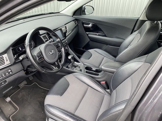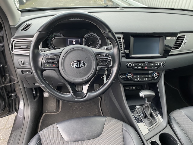 WIJ ZIJN ALLEEN OPEN OP TELEFONISCHE AFSPRAAK. Nette en goed rijdende Kia Niro 1.6 GDi Hybrid DynamicLine AUTOMAAT, slechts 100Dkm. NAP op de klok en met o.a. Automatische Klimaatregeling, Half Leder/Stof interieur, Navigatiesysteem, Bluetooth (Carkit), Cruise Control, Park Distance Control, Achteruitrijcamera, Origineel Licht Metaal, Afneembare Trekhaak en nieuwe APK. Inruil is uiteraard bespreekbaar.