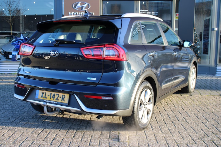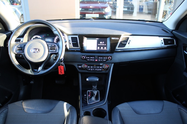 Geavanceerde techniek, waarbij een verbrandingsmotor samenwerkt met een elektromotor, zorgt dat deze auto geweldige prestaties neerzet en toch zuinig is met brandstof. In deze Kia profiteert u onder andere ook van: 16 inch lichtmetalen velgen, halflederen bekleding, LED-dagrijverlichting, in hoogte verstelbare voorstoelen, in delen neerklapbare achterbank en LED-achterlichten. Alles vrij achter? De achteruitrijcamera laat het meteen zien. Er is geen bestemming die het aanwezige full map navigatiesysteem niet kent. Dat rijdt lekker! Nooit meer te warm of te koud. De electronic climate control zorgt altijd voor de temperatuur die u kiest. Veilig en handig: het audiosysteem laat zich bedienen vanaf het stuur. Met de DAB-ontvanger heeft u keuze uit talloze digitale radiozenders met de allerhoogste geluidskwaliteit. Extra opties op deze auto zijn: regensensor, cruise control, automatisch dimmende binnenspiegel, lederen stuur en versnellingspook en centrale deurvergrendeling met afstandsbediening. Zoals u mag verwachten van deze Kia Niro is hij uitgerust met een reeks aan actieve veiligheidssystemen. Voorzien van het Lane-keeping systeem. Ofwel: blijf automatisch in je baan. Een noodsituatie? Dan is remmen cruciaal. Daarom heeft deze Kia Niro Brake Assist als remondersteuning. U bent mede dankzij hill hold functie en bandenspanningcontrolesysteem steeds veilig onderweg. Een proefrit levert het overtuigende bewijs. Bel nu!
