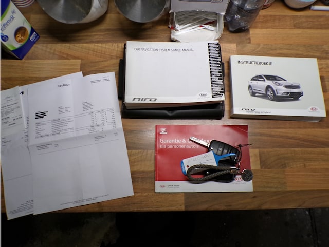 Overzichtelijk en veilig parkeren met de achteruitrijcamera. Overal en altijd. Als u regelmatig met een aanhanger of een fietsendrager op pad bent, is de afneembare trekhaak een praktische extra. In deze Niro vindt u schakelaars op het stuur om het full map navigatiesysteem te bedienen en het audiosysteem met DAB-ontvangst. De electronic climate control zorgt voor een prettige binnentemperatuur. In deze Kia kunt u zich concentreren op het verkeer, terwijl de auto de omgeving voor u in de gaten houdt. Een automatisch inschakelbare verlichting zorgt dat de verlichting aangaat als het donkerder wordt - in tunnels bijvoorbeeld - en de regensensor schakelt de ruitenwissers in als het nodig is. U hoeft er niets aan te doen. En dan is deze auto ook nog eens voorzien van cruise control, automatisch dimmende binnenspiegel, isofix-aansluiting, centrale deurvergrendeling met afstandsbediening en verstelbaar stuur.